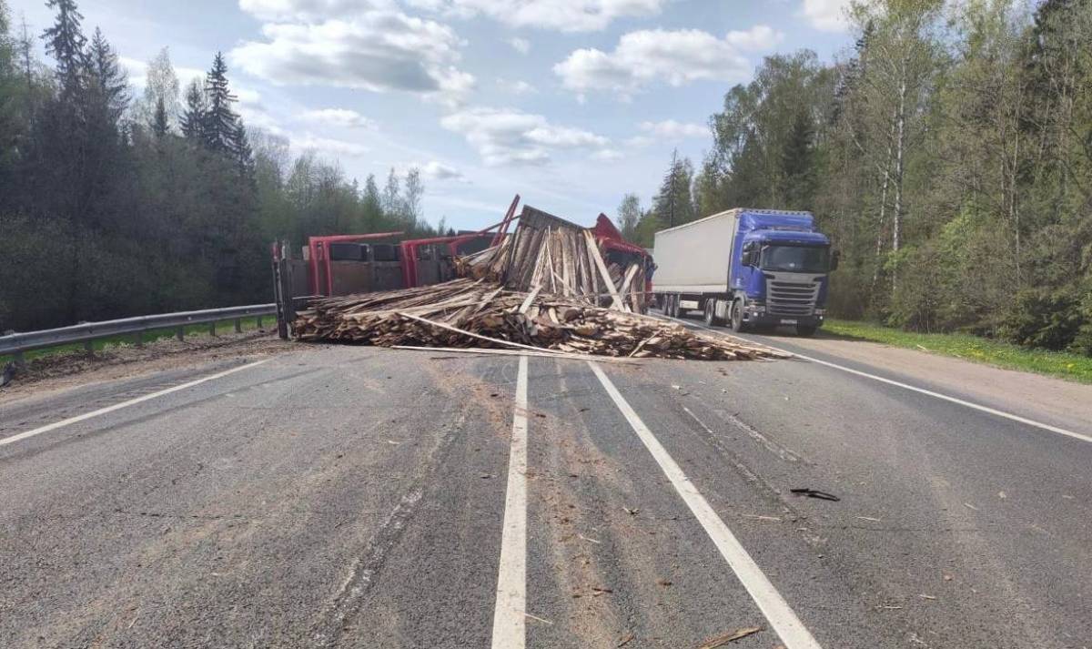 Сегодня, 15 мая, в 14:15 на 463 км автодороги «Россия» вблизи деревни Вины Крестецконо округа у грузовика «Скания» с полуприцепом лопнуло переднее колесо.